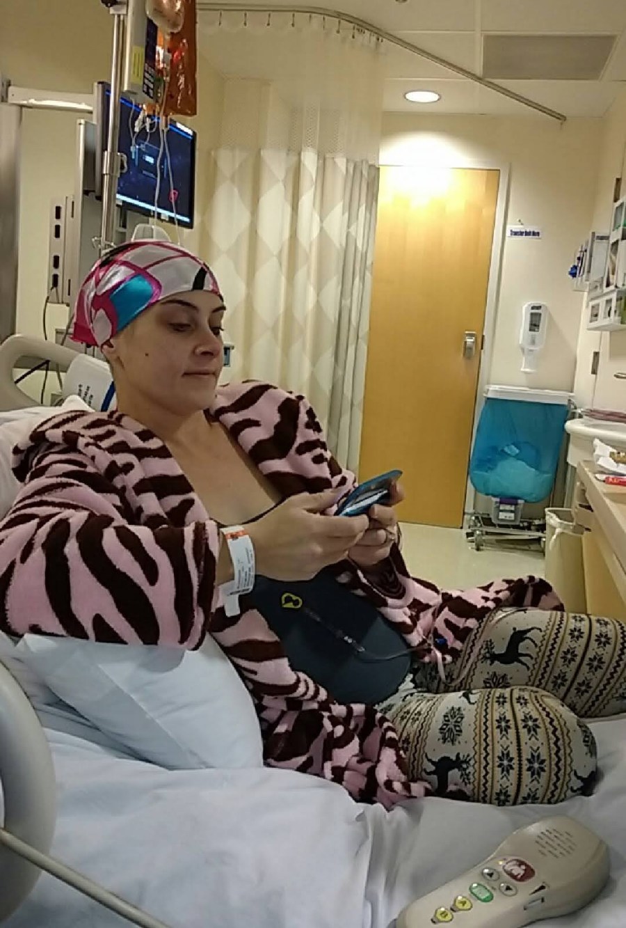 So I guess I should start by saying before I got cancer I was a healthy person. So being admitted to the hospital was weird especially because I knew something was really wrong, but I felt a strange sense of peace. I was anemic at this point and had to be put on IV fluids. I don’t like needles! So I tried to argue with the nurse and told her I don’t want an IV, as if that was an option at this point. So she brought in a specialist in placing IV’s who told me that her husband was also terrified of needles and promised I wouldn’t feel a thing. I let her do it and she kept her promise, I didn’t feel anything. I also needed to have my stomach drained because the mass that had been growing there caused fluid to develop in my abdomen. Warning this is gross!
